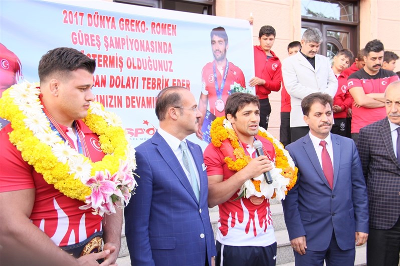 2017 Dünya Güreş Şampiyonasında Greko-Romen dalında Dünya Şampiyonu olan Rıza KAYAALP ve Dünya Üçüncüsü olan Atakan YÜLSEL Yozgat Valiliği önünde düzenlenen törenle karşılandı.